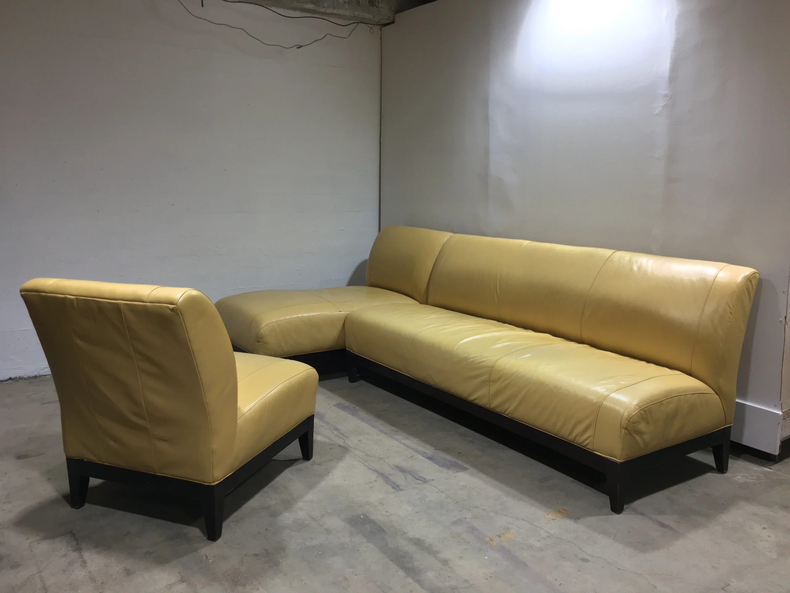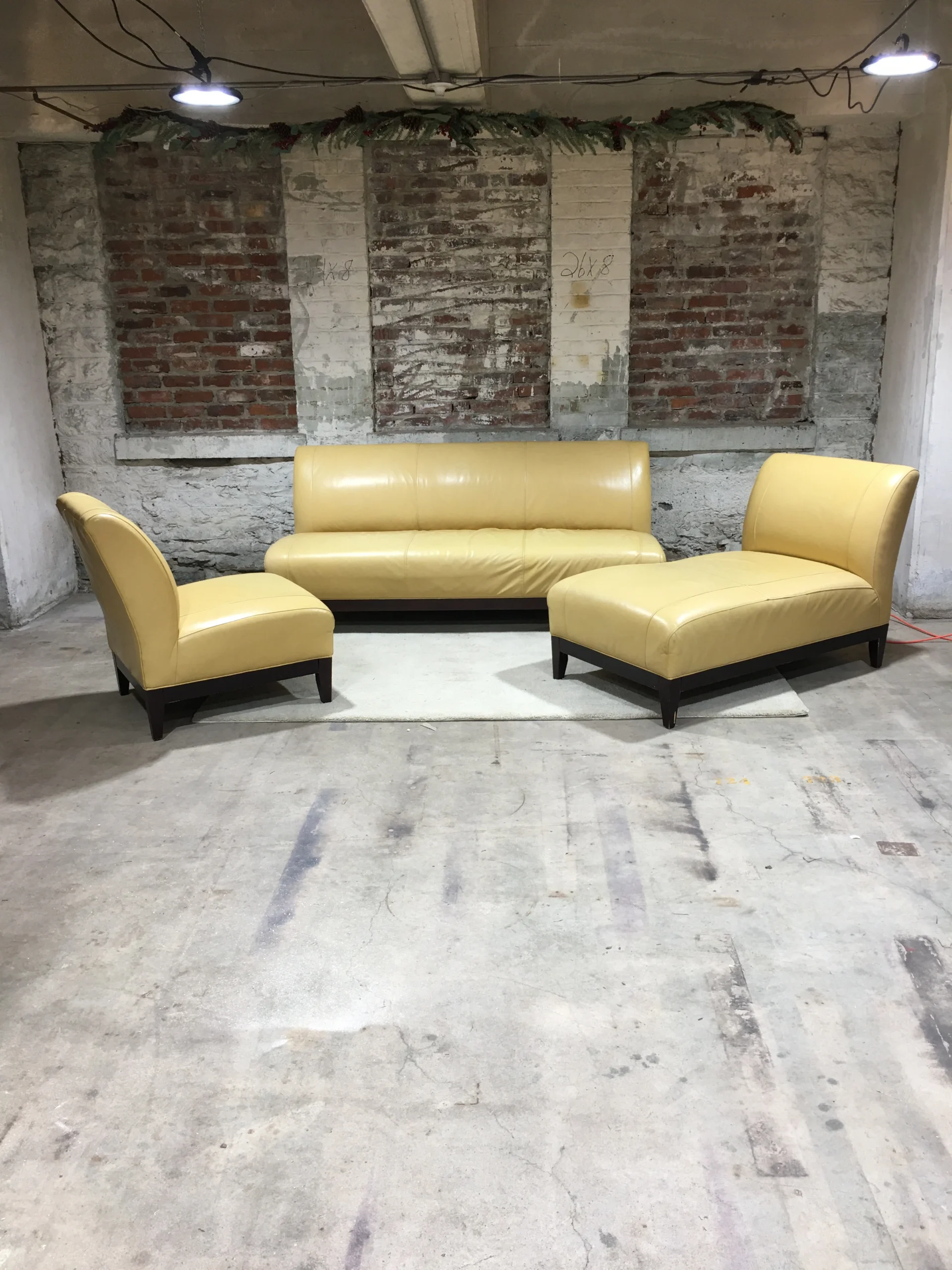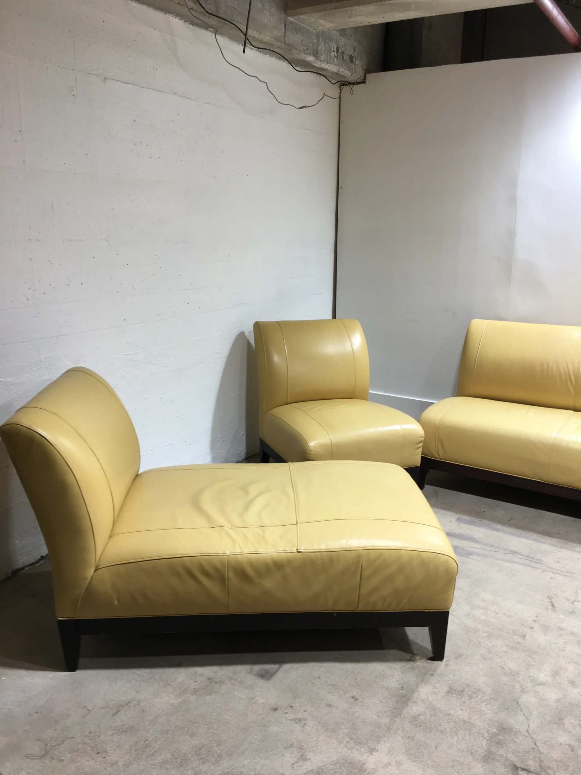 Leather 3pc couch set in Yellow - Couch, Chaise, and Chair
